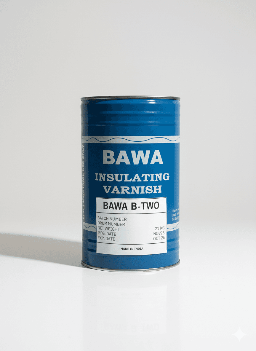 BAWA B-TWO is a premium alkyd-based impregnating varnish engineered for Class B (130°C) electrical insulation systems. It is formulated to provide deep penetration into windings, strong film formation, and dependable electrical protection for rotating and static equipment.