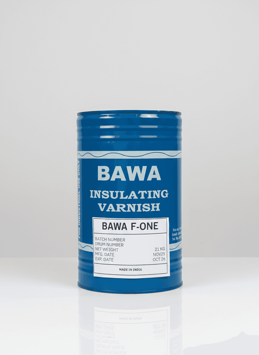 BAWA F-ONE is a Class F alkyd-melamine impregnating varnish engineered for electrical machines operating under higher thermal stress. It provides high dielectric stability, strong bonding, and uniform coil penetration, making it ideal for industrial motors, alternators, and compact windings requiring dependable insulation performance.