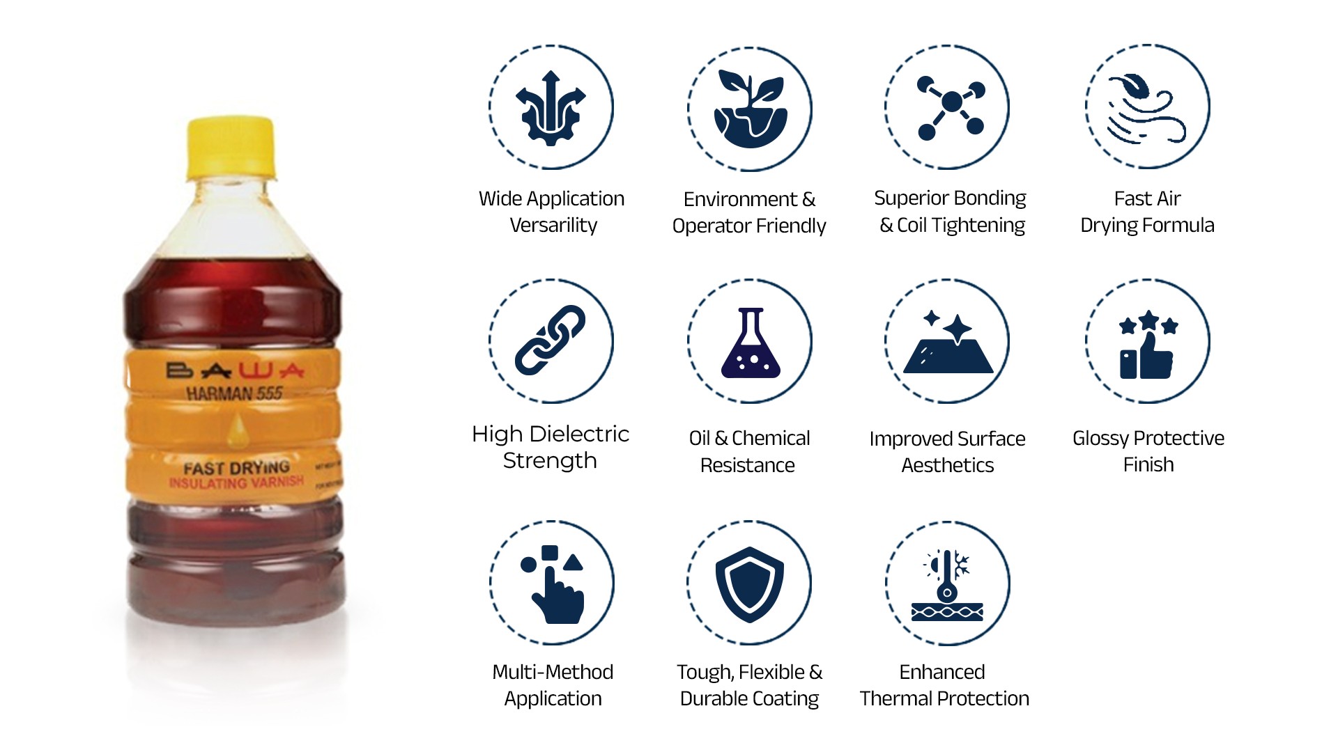 Bawa Polymers’ insulating varnish enhances electrical performance, improves heat resistance, and extends equipment life—delivering reliable protection and long-lasting efficiency for motors, transformers, and industrial applications.